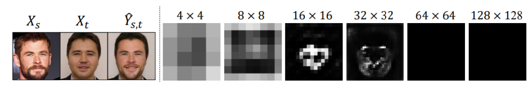 在第一阶段,我们希望生成一个高保真(拥有源图像 X_s 特征,且保留目标图像 X_t 动作等属性)的人脸图像