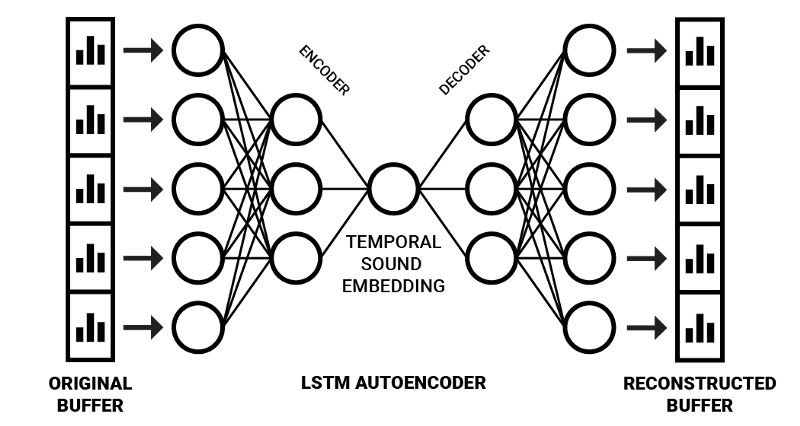 我们可以通过扩展自编码器神经网络架构实现这一方法。基于这一架构,我们可以给它传入空洞频率频谱缓冲,以生成嵌入,而不是仅仅传入瞬时频率信息,这就结合了感官声音记忆和选择性注意瓶颈。为了处理序列化信息,我们可以使用序列到序列自编码器架构6。