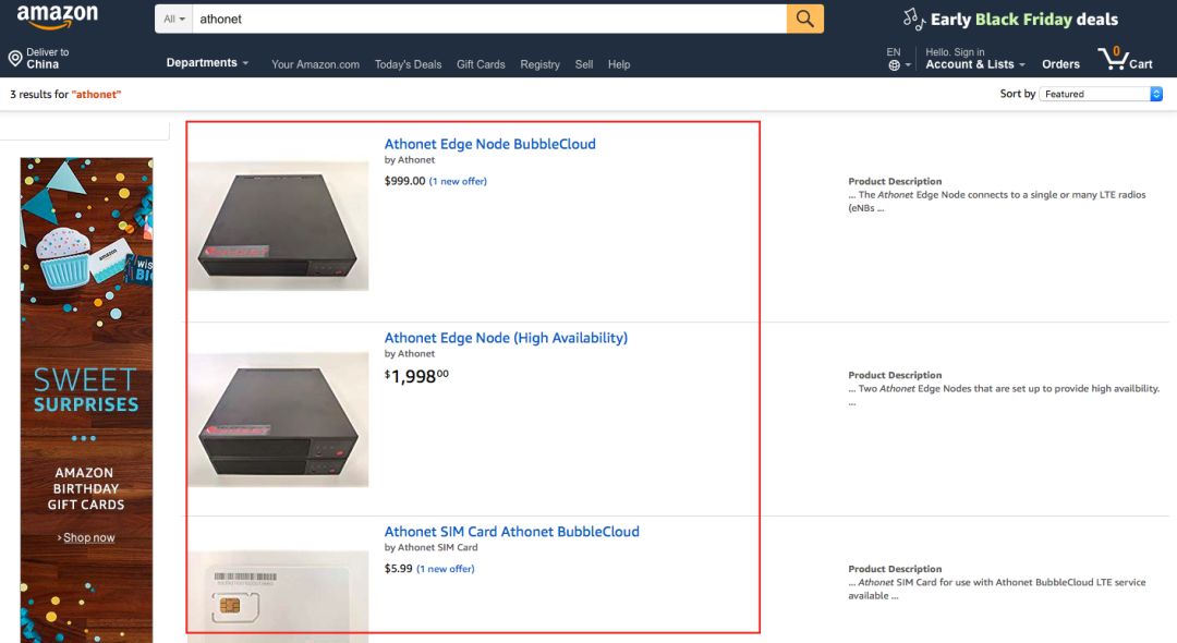 为此,Athonet同时也在亚马逊Marketplace售卖他们的边缘节点和SIM卡。
