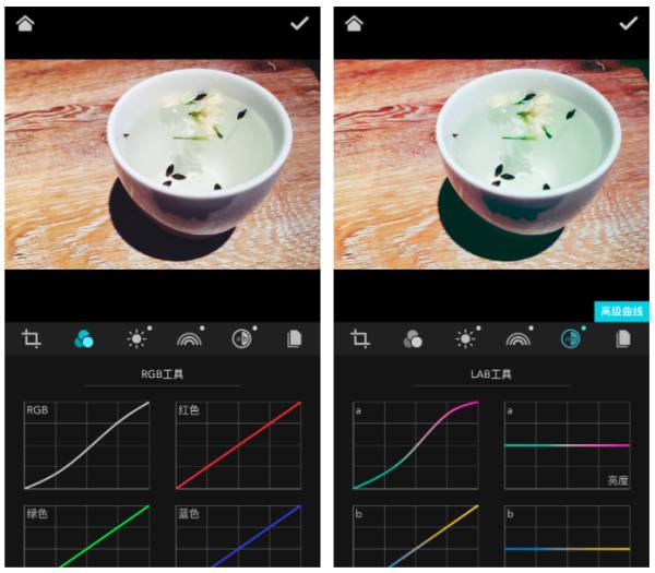 如果说 Darkroom 是将注意力放在曲线的易用性上,MaxCurve 则是集中精力要将功能做到最强大。除了传统的 RGB 曲线外,MaxCurve 还提供了包括对比度、Gamma、色温、黑白、色相、饱和度以及 Lab 曲线等共 20 条可调节曲线,MaxCurve 中所有的图片效果都需要通过控制曲线来完成。一方面,它的确扩大了用户的自主性,支持你调校出更随心所欲的图片效果;另一方面,它也极大地提升了摄影后期的门槛,降低了处理的效率。如果你对曲线了解并未那么透彻,我并不建议从 MaxCurve 开始上手。