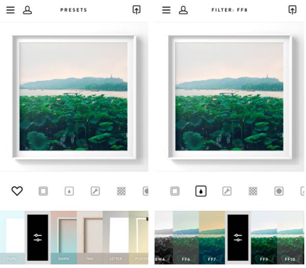 VOUN 的功能就是为照片裱上各式各样的「画框」,此「画框」绝非美图秀秀中那些「俗气」的存在,每一款极其精致,文艺气息满到快要溢出来。添上 VOUN 的画框,感觉直接可以摆进画廊做展览。VOUN 也配备了一些滤镜及调色功能,虽然简陋,却与画框相得益彰。如果你自认为是一名文艺青年,该是与 VOUN 有「相见恨晚」之感吧。
