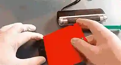 先将手机关机,然后使用注射器将玻璃胶涂在碎屏上,接着用刮片均匀地“打扫”屏幕,使胶水平整地覆盖在碎屏上,再用紫外线灯照射屏幕10~15分钟,这样就可以固化屏幕上的玻璃胶了。