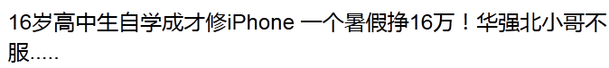 美国一名的高中生光靠着修iPhone,去年暑假就挣了16万,并且他是在YouTube上找了一些视频自学的。