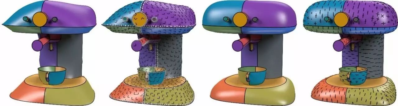 图1 咖啡机:空间曲线框和对应的填充后的三维形状