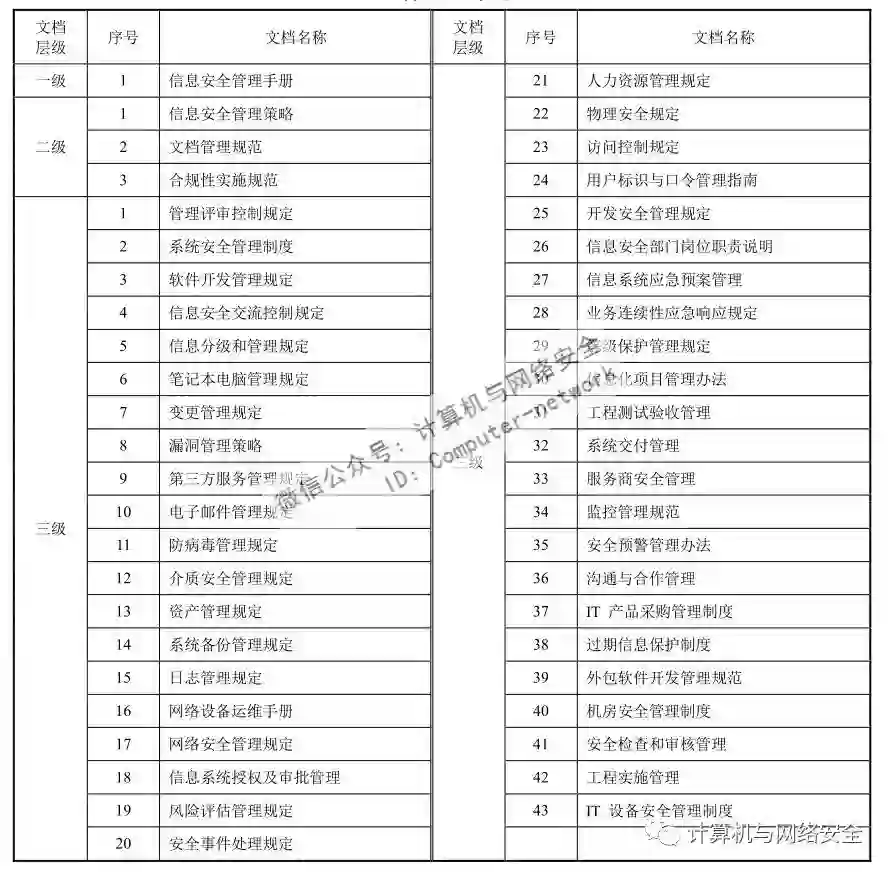 3)应形成由安全策略、管理制度、操作规程、记录表单等构成的全面的信息安全管理制度体系。