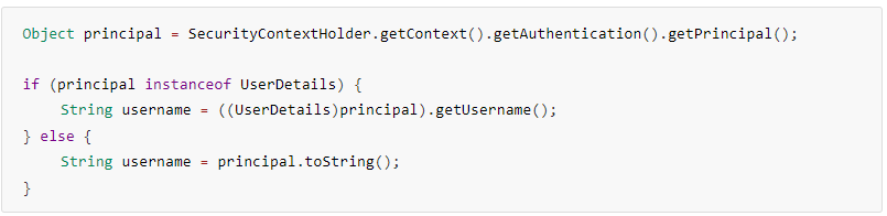 在SecurityContextHolder中保存了当前活跃用户的信息。Spring Security使用一个Authentication对象来表示这些信息。在程序的任何地方,都可以用以下代码来获取当前认证用户的信息。