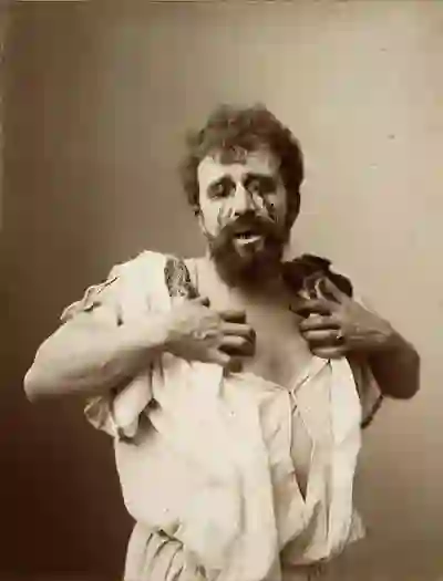 俄狄浦斯得知自己弑父娶母后,刺瞎了自己的双眼(戏剧照片)丨Wikipedia/Albert Greiner sr。&jr。
