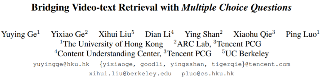 本文提出了一个全新的借口任务用于视频文本预训练,叫做多项选择题(MCQ)。通过训练辅助的BridgeFormer根据视频内容回答文本构成的选择题,来学习细粒度的视频和文本特征,并实现下游高效的检索。该研究已被 CVPR 2022 收录为 Oral。