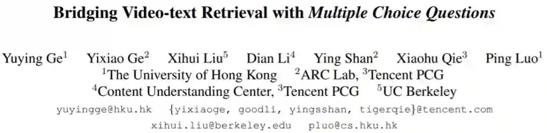 本文提出了一个全新的借口任务用于视频文本预训练,叫做多项选择题(MCQ)。这一借口任务加强了局部视频和文本特征的细粒度的关联,并且实现了高效的下游检索。一个参数化模块 BridgeFormer 被训练通过借助视频特征,回答由文本特征构成的选择题,并且在下游任务时可以被移除。本文模型在文本到视频检索和零样本动作识别多个测评基准的结果,显示了 MCQ 这一借口任务的有效性。