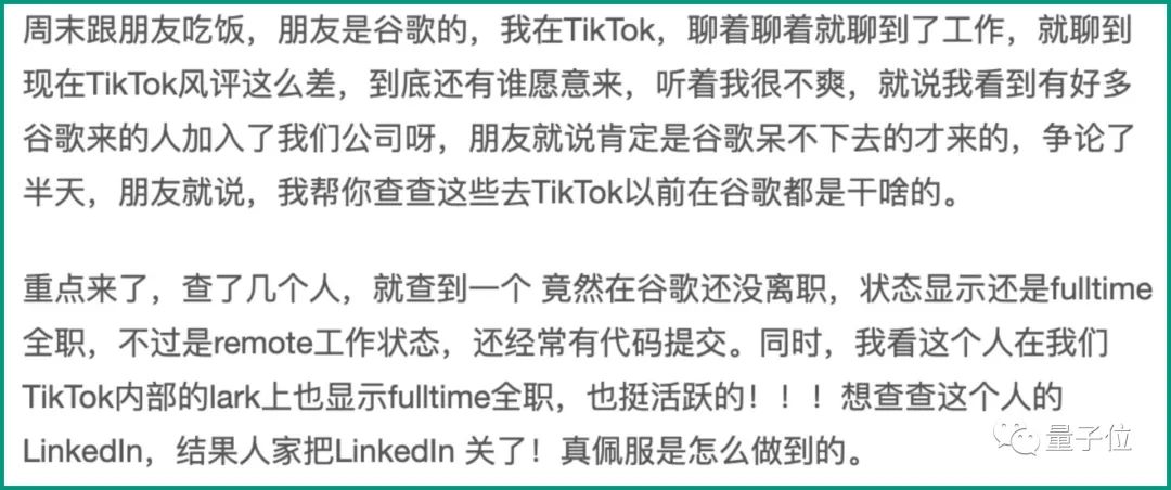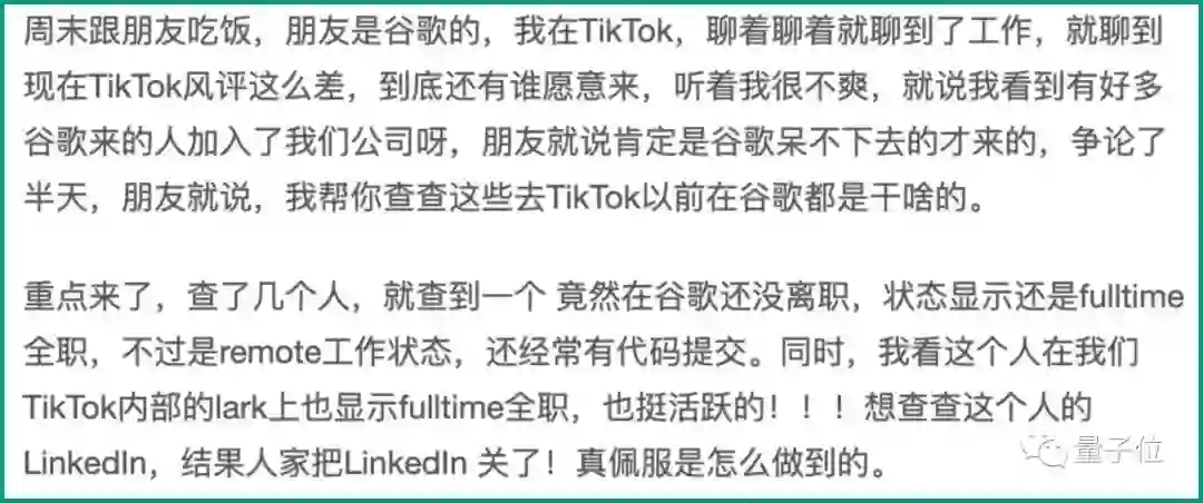 在一亩三分地论坛上,就有人爆料脚踩TikTok和谷歌两条船的职场奇闻。