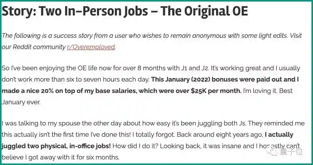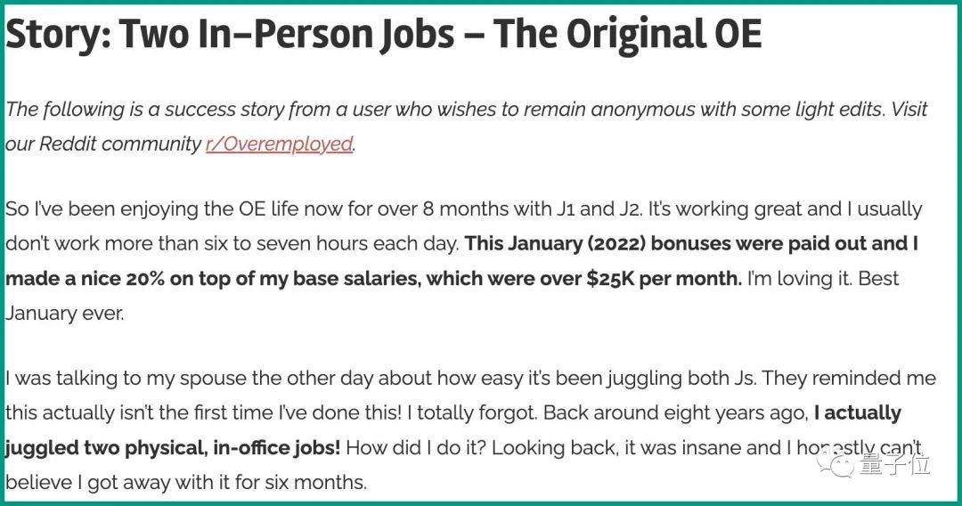 而在一个名为Overemployed的网站上,类似的经历非止一例。