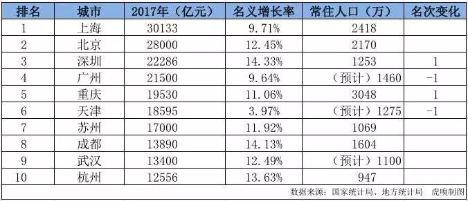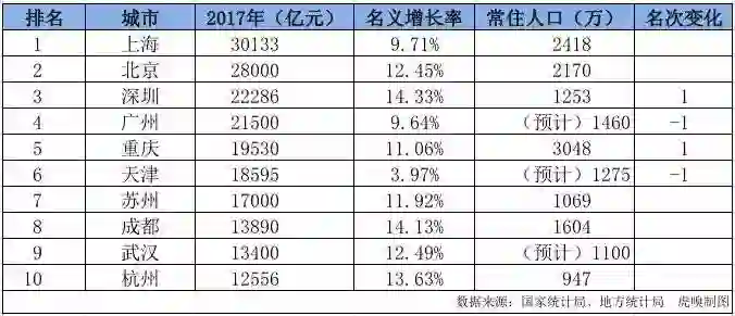 在全国GDP排名前十的城市中,杭州是唯一一个没有过千万常住人口的城市,前六中有四个直辖市,排名第一名的上海几乎是杭州体量的3倍,人口规模也要高出1.5倍,硬碰硬的实力悬殊太大。