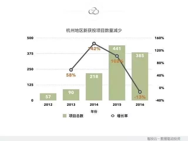 智投云的监测数据显示,过去五年里,杭州本地的创业融资项目数量在2015年达到峰值后,已在2016年出现下滑。某种程度上,也是杭州特色创业小镇掀起“双创”风后的一阵微调回落。