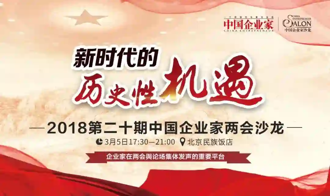 十九大之后的第一次全国两会即将召开。2018年3月5日晚,第二十期“中国企业家两会沙龙”将如约举行,来看看企业家代表委员都关注些什么?他们眼中“新时代的历史性机遇”来自哪里?