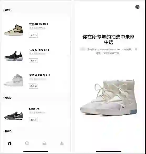 Snkrs 抽签界面
