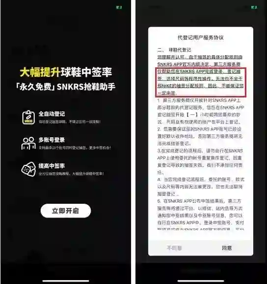 拿球鞋交易平台 Nice 来说,现在推出了“代登记”服务,就可以跳过前面提到的繁琐的信息登记环节,直接进行抽签。