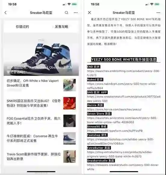 应运而生的,还有不少专门提供球鞋上市时间的公众号、社群,使得抽签不仅仅是运气和手速的因素,还是信息的较量。