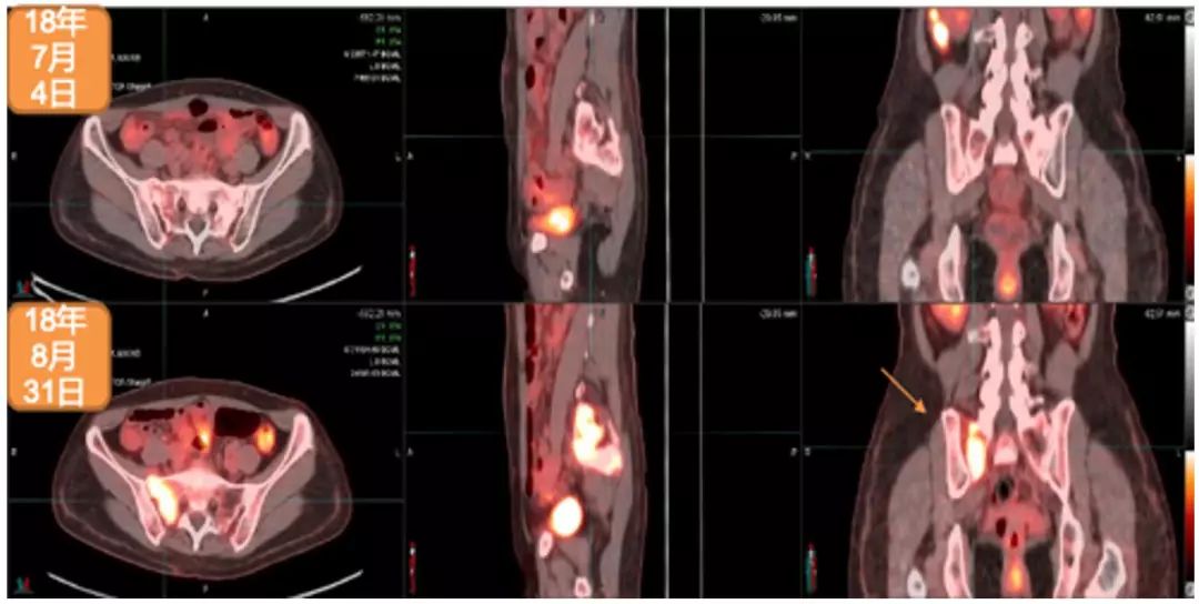 2018年7月4日与2018年8月31日PET/CT检查对比