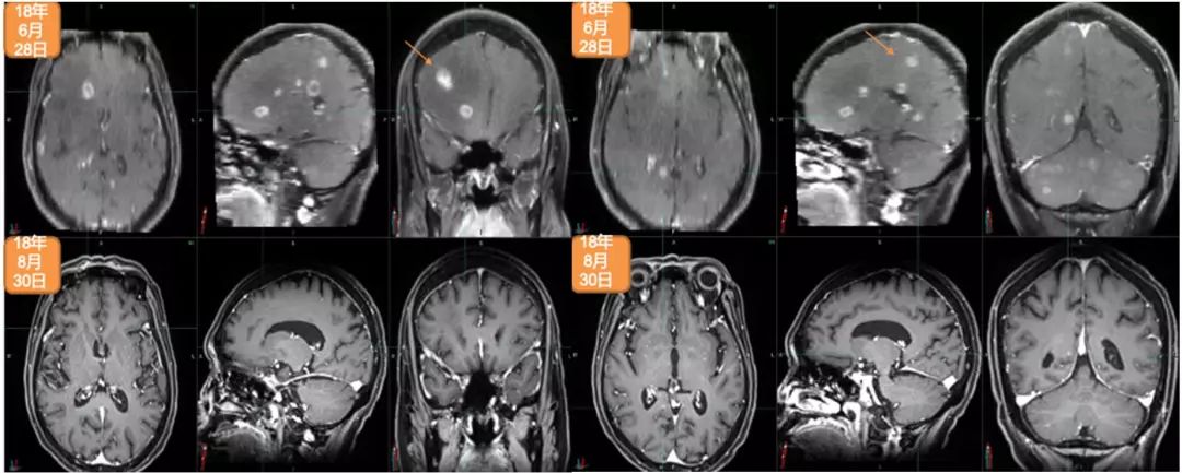 2018年6月28日与2018年8月30日头颅MRI对比