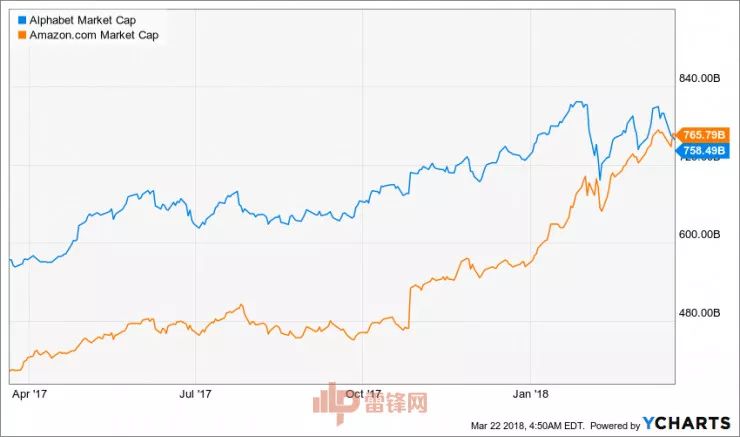 巨人之战从未间断,路透社近期刚刚曝出,谷歌正在与塔吉特(Target)、沃尔玛、家得宝(Home Depot)、好市多(Costco)和 Ulta 等零售商联手,试图组建一个新的大型零售品牌群,并且重磅打出搜索广告项目——Shopping Actions,外界评论称这是谷歌联合众多零售平台,目标直指亚马逊的“合纵连衡”之战术。然而就在“好戏将要”上演之际,不巧的是,Facebook 数据泄露染指政治选举一事持续发酵,让 2016 年竞选期间就身陷“Googlelobby(谷歌政体)”之说的谷歌也受到影响,其母公司 Alphabet有所跌落。投资者也许见风使舵,对已经越来越贴近其生活各个领域的亚马逊更加青睐。一跌一涨之间,这一回合,亚马逊略胜一筹。