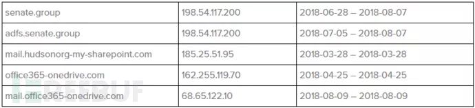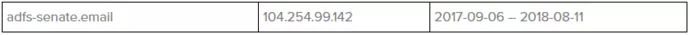 我们注意到,有几个域名和子域在某网络架构中仅只出现了一天或更短的时间,这有点奇怪,可能是APT28组织发起攻击后,为了避免其钓鱼页面被追踪溯源而迅速禁用和转移的迹象。然而,也有一些域名在同一网络架构中长期出现,像 Namecheap 上的 ‘adfs-senate.services’ 和 Domain Registry 的 ‘adfs-senate.email’就将近活跃了一年,而且Namecheap还汇集了攻击者的部署页面,并把它们设置成吸引流量的自动跳转页面。