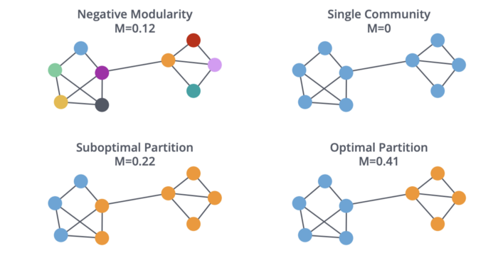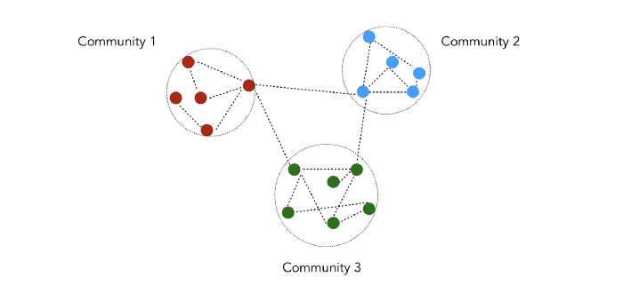 社群检测是根据给定的质量指标将节点划分为多个分组。