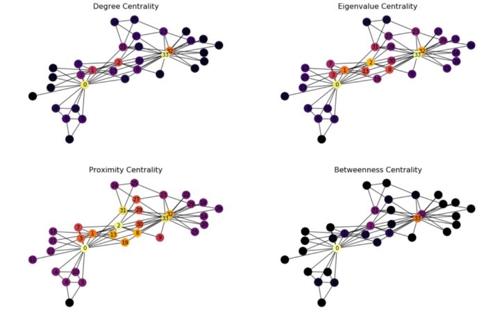 axarr[0,1].set_title('Eigenvalue Centrality', size=16)# Proximity Centrality