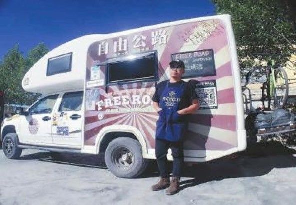 为了实现“边游边赚”,不靠家人也不被物质阻挡脚步,杨蒞童一路摆摊、睡遍各种营地、做直播,一边实现自己追梦的旅途。