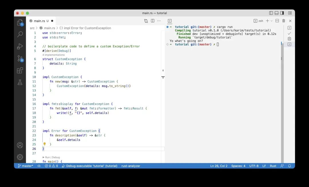 与其他行业相比,编程的最大优势就是可以使用别人构建的东西。如果你计划在程序中进行错误处理,那么有一个很好用的包 thiserror。Rust 的包管理器是 cargo。