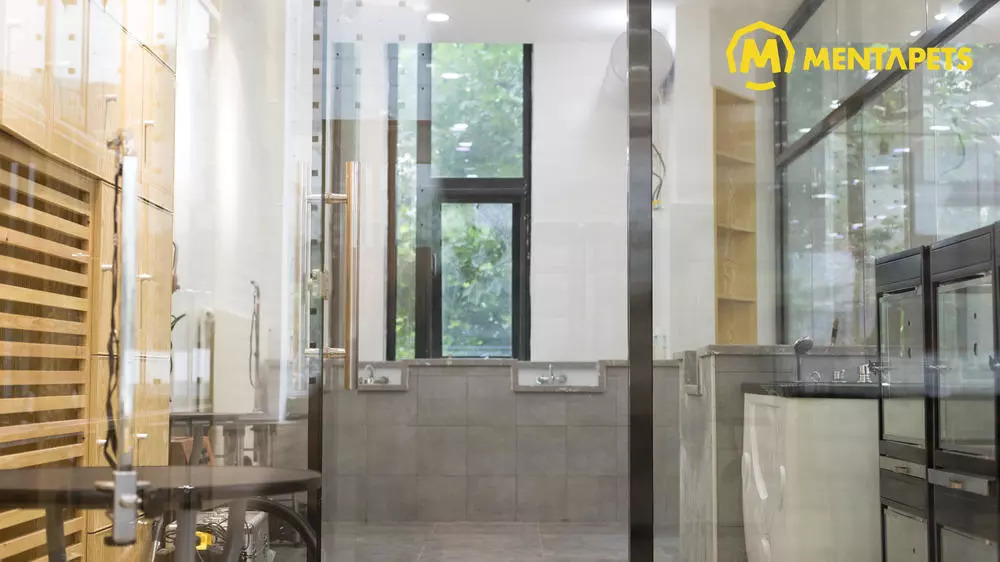 顾客可以透过落地玻璃,全程观看宠物护理过程。