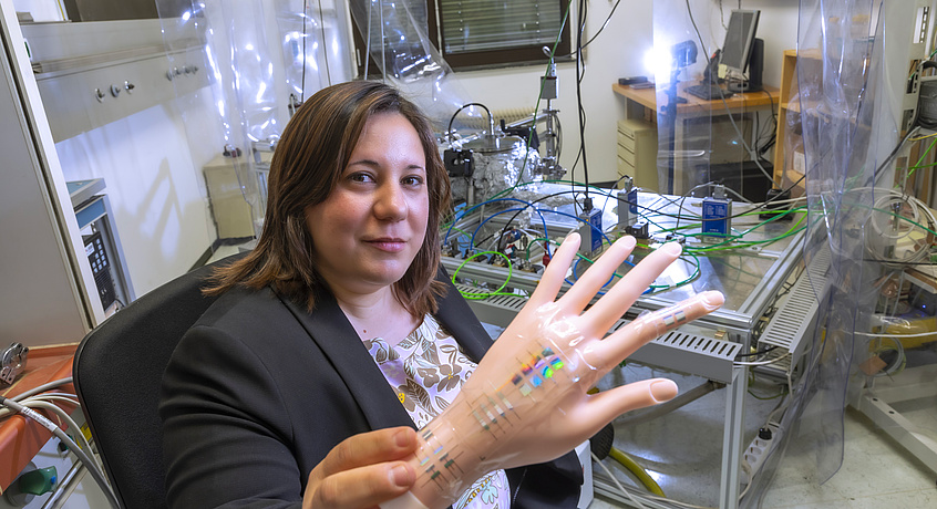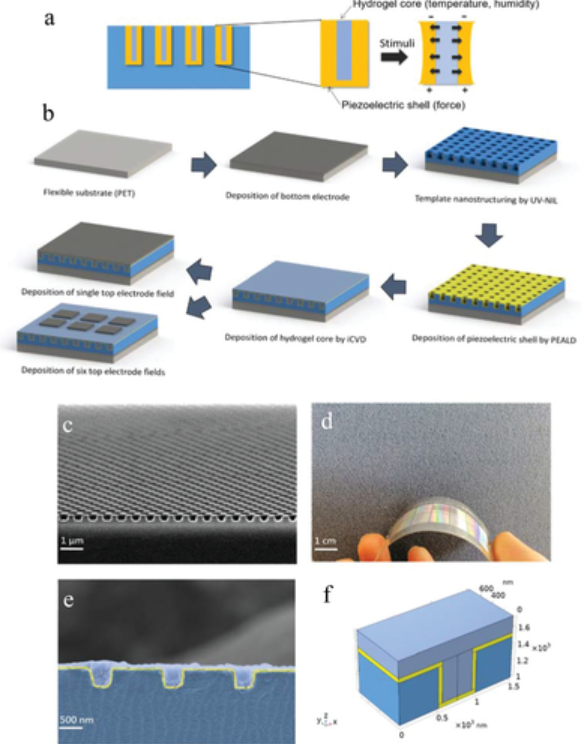 智能皮肤的每个传感器层非常薄,同时配备了覆盖整个表面的传感器元件。该研究首次结合了物理化学中的三种已知方法:水凝胶材料的化学气相沉积、氧化锌的原子层沉积和聚合物模板的纳米压印光刻。