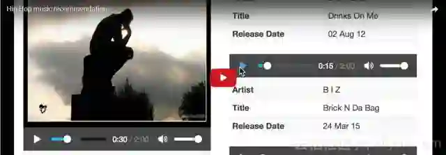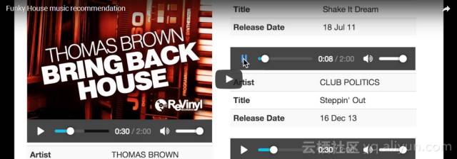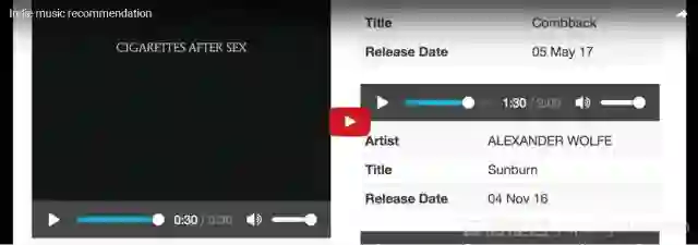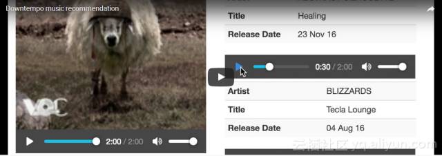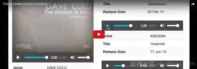 下图是推荐的几个例子,播放的第一首歌是随机选择的,第3个例子获得了最类似的推荐。由于网络受限,播放需要通过外网,图片下面对应着播放链接。