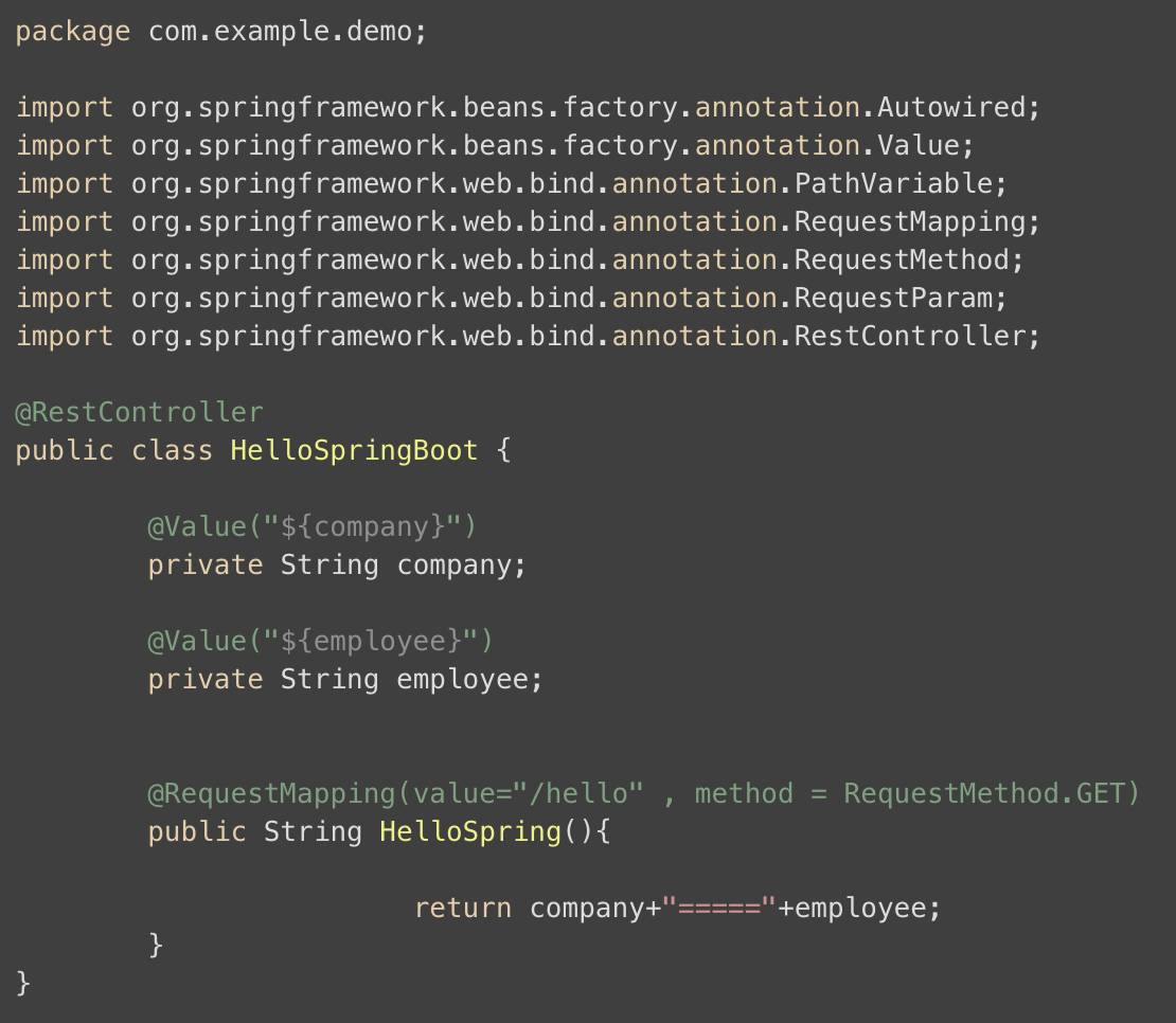看了上面的例子后,会产生一个疑问,如果想一次调用10个、20个、50个属性值,难道我要在程序中注入50次值,使用50次注解吗? 为了解决这个疑问,Spring Boot 是这么解决的!