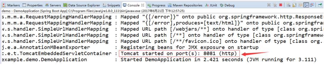 效果如下,首先从日志上看,端口已经变为8081