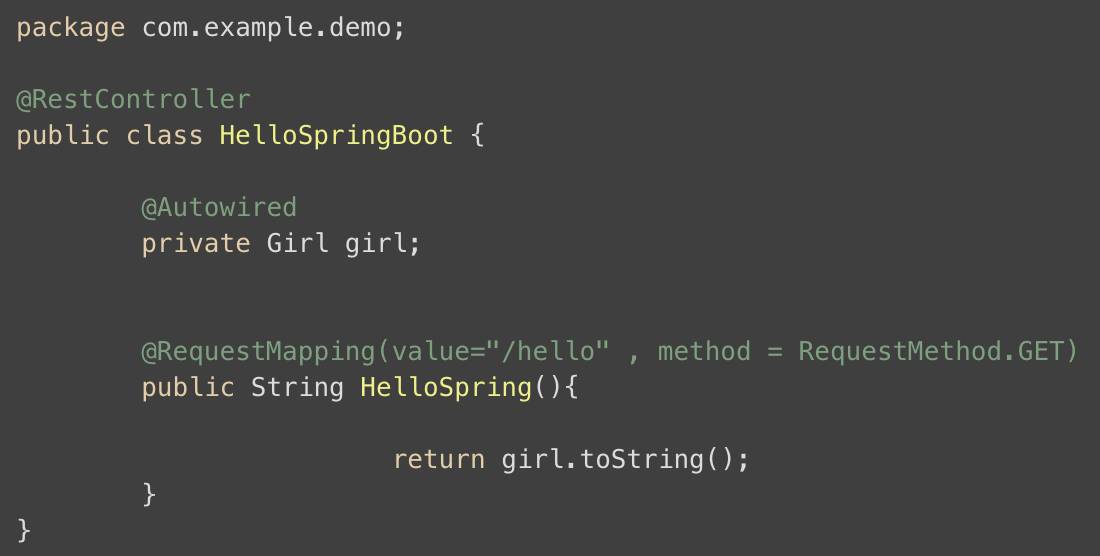 然后写一个类,这个类中提供Girl的属性,及Setter,Geter方法,需要使用两个注解:
