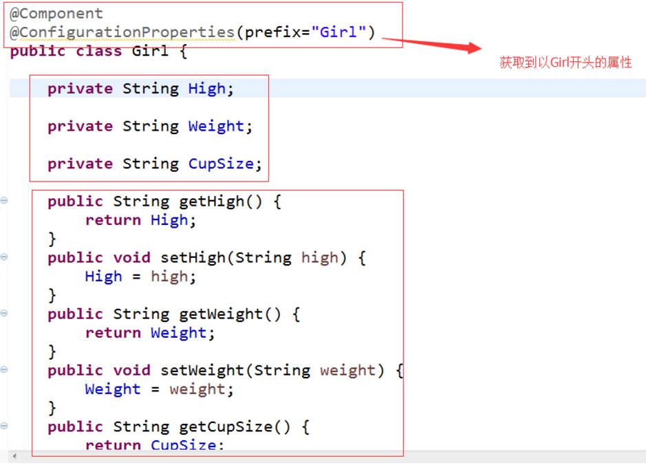 @ConfigurationProperties(prefix="Girl") //找到以Girl开头的属性
