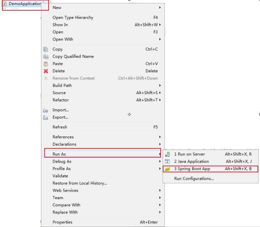 右键点击DemoApplication.java ——》Run As ——》Spring Boot App启动程序