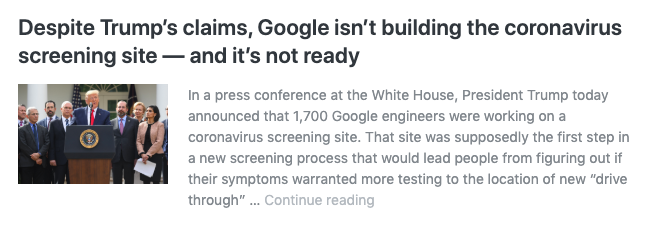 周五,特朗普承诺由谷歌开发一个全国性网站,这将是政府筛查过程的核心。谷歌还没有准备好宣布这一消息。因为这个网站当时还不存在。甚至那个网站的有限版本,也不是由谷歌开发的。