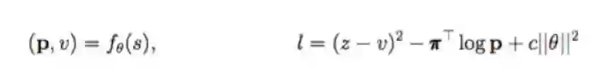 损失函数l包含三项:第一项是为了优化值函数的预测,第二项是为了优化落子概率的预测,第三项是为了防止过拟合。