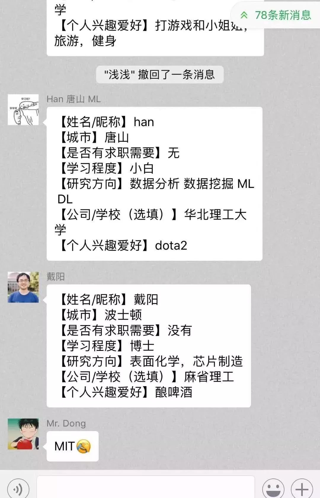 群内自我介绍,卧虎藏龙,有北大、清华的研究生,
