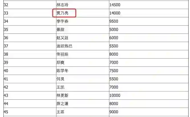 在福布斯2017年度中国明星排行榜,贾乃亮又以年收入1.4亿元位列排行榜第33位,紧随林志玲之后,排在众多超红明星之前。