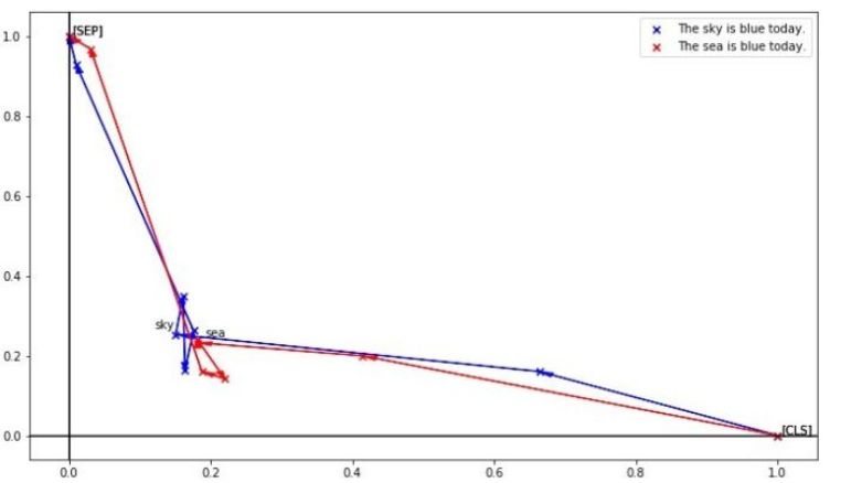 这是把 token 编码降维后的效果,可以看到 sky 和 sea 明明是天与海的区别,却因为上下文一样而得到了极为相似的编码。细粒度表示能力的缺失会对真实任务造成很大影响,如果被针对性攻击的话更是无力,所以当时就想办法加上更细粒度的任务让 BERT 去区分每个 token,不过同句内随机替换的效果并不好,弱鸡的我也没有再往前想一步,不然就也 ICLR 了。相信这个任务很多人都想到过,不过都没有探索这么深入,这也告诫我们,idea 遍地都是,往下挖才能有 SOTA。