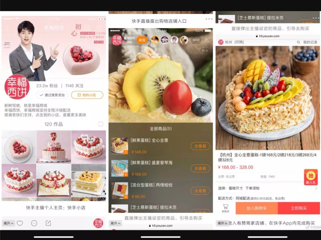 上述消息还表示,快手App将新增“快手小店”,每个主播可申请开店;快手作品区域将展示商品,商品来源于合作的有赞商家店铺;快手主播可直接引导粉丝,查看推荐商品;点击入口“去看看”,在快手App内直接进入有赞店铺;快手和有赞实现用户账号相互打通,快手用户可直接购买。