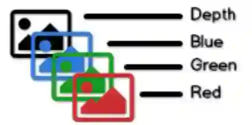 RGB-D 格式图像就像一堆单值图像,每个像素都有四个属性,红色,绿色,蓝色和深度。