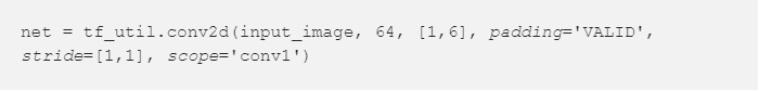 第一步操作是进行 2d 卷积,其内核大小为(1,6),它用来聚合一个点的相关信息(x,y,z,r,g,b;总共六个)。此处的输出应为(n,1,64)。