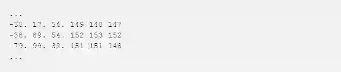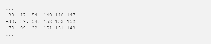 首先,我将给出一个示例点云,它每行是(x,y,z,r,g,b)。其中每行代表一个点。假设我们在这个例子中有 n 个点。