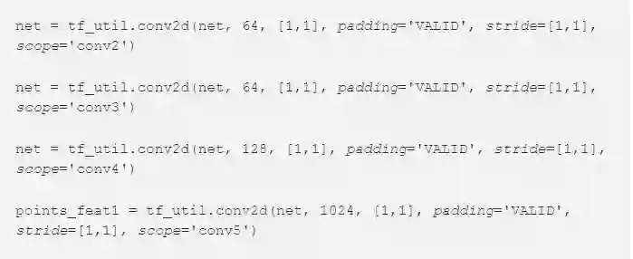 注意:每层都有批量标准化,我将其删除以简化演示过程。此外,原始 PointNet 使用 9 个特征作为输入(x,y,z,r,g,b,normalized_x,normalized_y,normalized_z)。