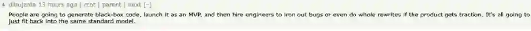还有网友预测,用AI写代码的话,最后还是要让工程师来调整它,本质上还是殊途同归。