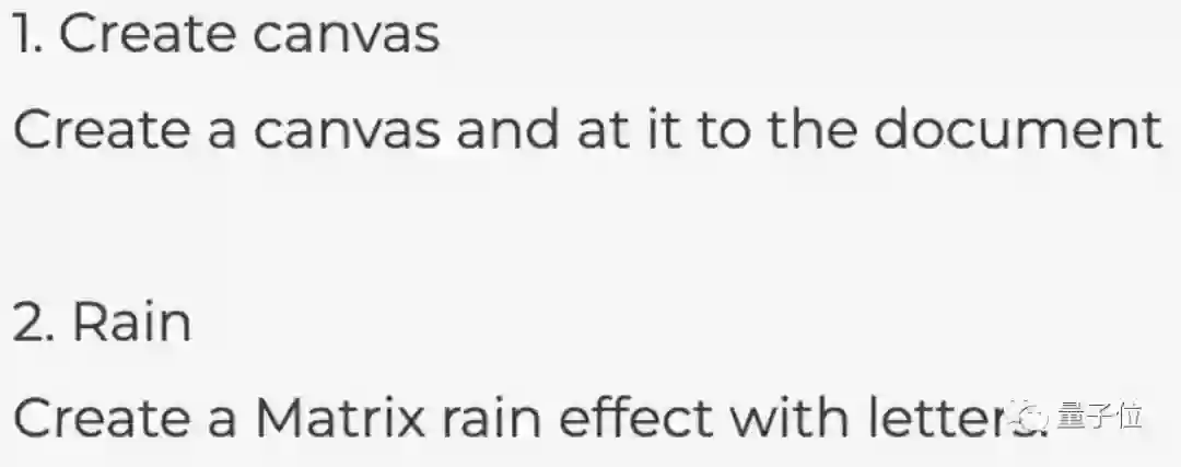 其中比较有意思的是生成《黑客帝国》字符雨视觉特效,几乎是只告诉AI“创建一个画布,加一个黑客帝国雨特效”,没有任何额外解释,AI就做出来了: