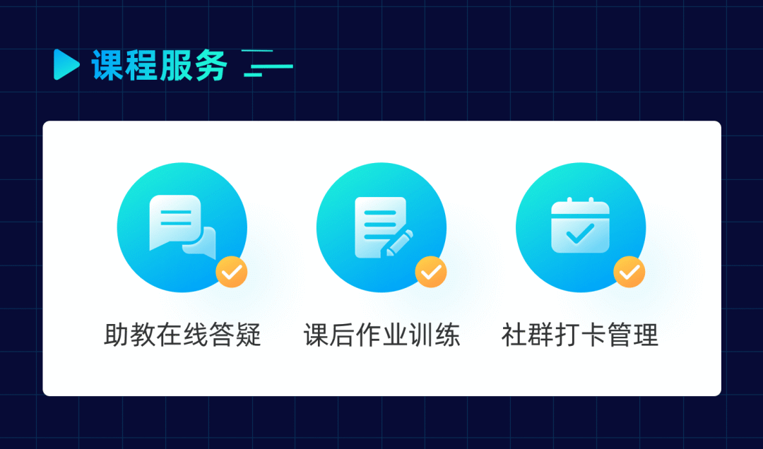 课程配备有专职班主任督促学习、群内互动交流干货分享不断、更有资深助教为大家在线答疑解惑。聚焦人工智能实战训练。